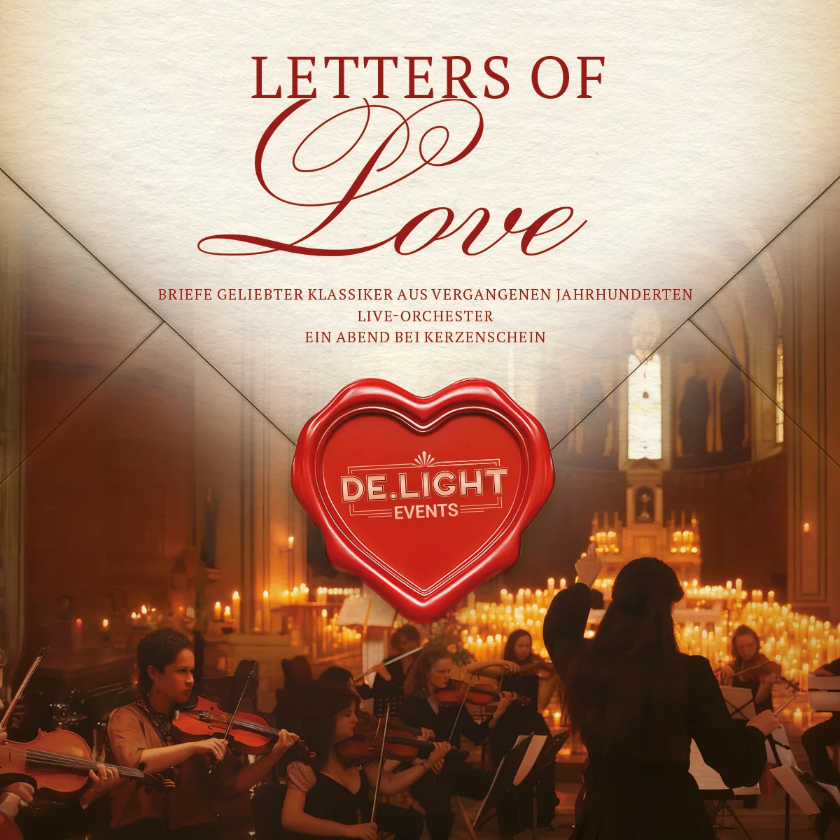 Ein Abend mit berührender symphonischer Neoklassik, dargeboten von einem Live-Orchester im romantischen Schein von Kerzenlicht, bei dem die zeitlosen Worte großer Liebender verlesen werden und den intimsten Gefühlen eine Stimme verleihen Am 19. März erklingt im romantischen Schein unzähliger Kerzen berührende symphonische Neoklassik, live gespielt von einem Orchester. Begeben Sie sich auf eine Reise mit unserer kulturellen Zeitmaschine und erleben Sie, wie die Liebesbriefe großer Persönlichkeiten, die in Deutschland und der ganzen Welt verehrt werden, vor Ihren Augen erwachen – von Remarque und Dietrich über Rilke, Hesse, Robert und Clara Schumann, Goethe, Beethoven bis hin zu Van Gogh, Monet, Chopin und vielen mehr. Dies ist nicht einfach ein Konzert – es ist ein Bekenntnis, dass die Liebe stärker ist als die Zeit. Tauchen Sie ein in eine Atmosphäre der Zärtlichkeit, Inspiration, Lebensbejahung und ewigen Schönheit – im Lichte tausender Kerzen, wo jeder Ton wie ein Liebesgeständnis klingt. *Während die Sprache der Musik universell ist, werden die Worte der großen Liebenden auf Deutsch und Englisch zum Leben erweckt, um jedes emotionale Nuance spürbar zu machen.