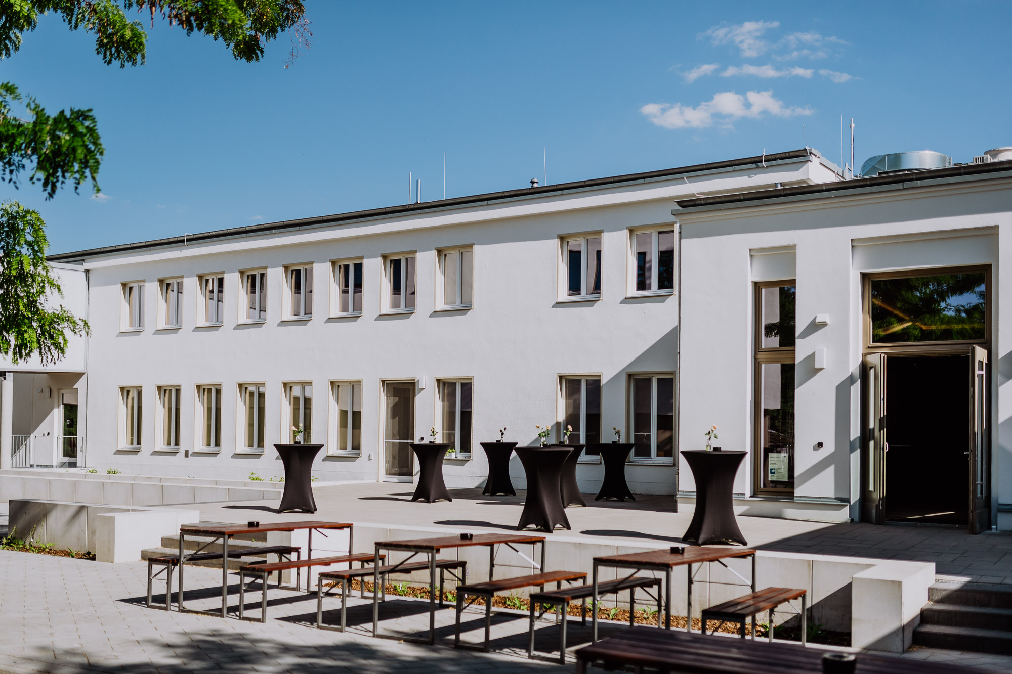 - Sitzgarnituren mit Holzbänken für ca. 120 PAX
